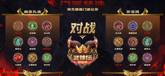 决赛第一场,曲阜孔庙被禁化生、地府,珍宝阁被禁五庄、化生。这就意味着曲阜孔庙没办法使用国标点杀阵容,而珍宝阁虽然可以用国标阵容,但如果不带五庄的话就很难应对以咒师普陀为核心的阵容。