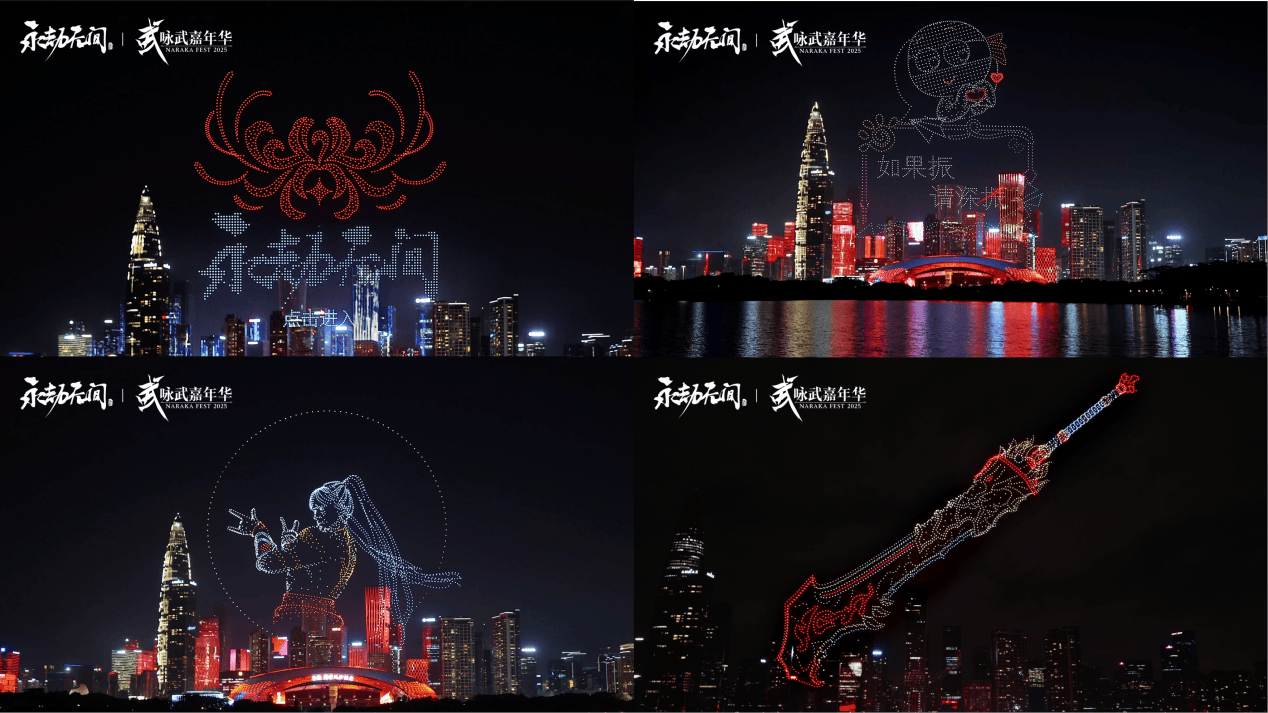 《永劫无间》世界冠军赛期间,“如果振,请深振” 的口号响彻深圳,成为全城狂欢的燃情注脚。千架无人机组成的武侠光影秀划破夜空,将《永劫无间》的国风美学与电竞激情完美融合;咏武嘉年华上,国风舞蹈、乐队演出等多元潮玩活动轮番上演,吸引万千硬核玩家奔赴集结,更引得全城路人驻足打卡,共同沉浸于这场狂欢之中,持续引爆全网社交场域,让整座城市都沉醉在武侠电竞的热血浪潮里。