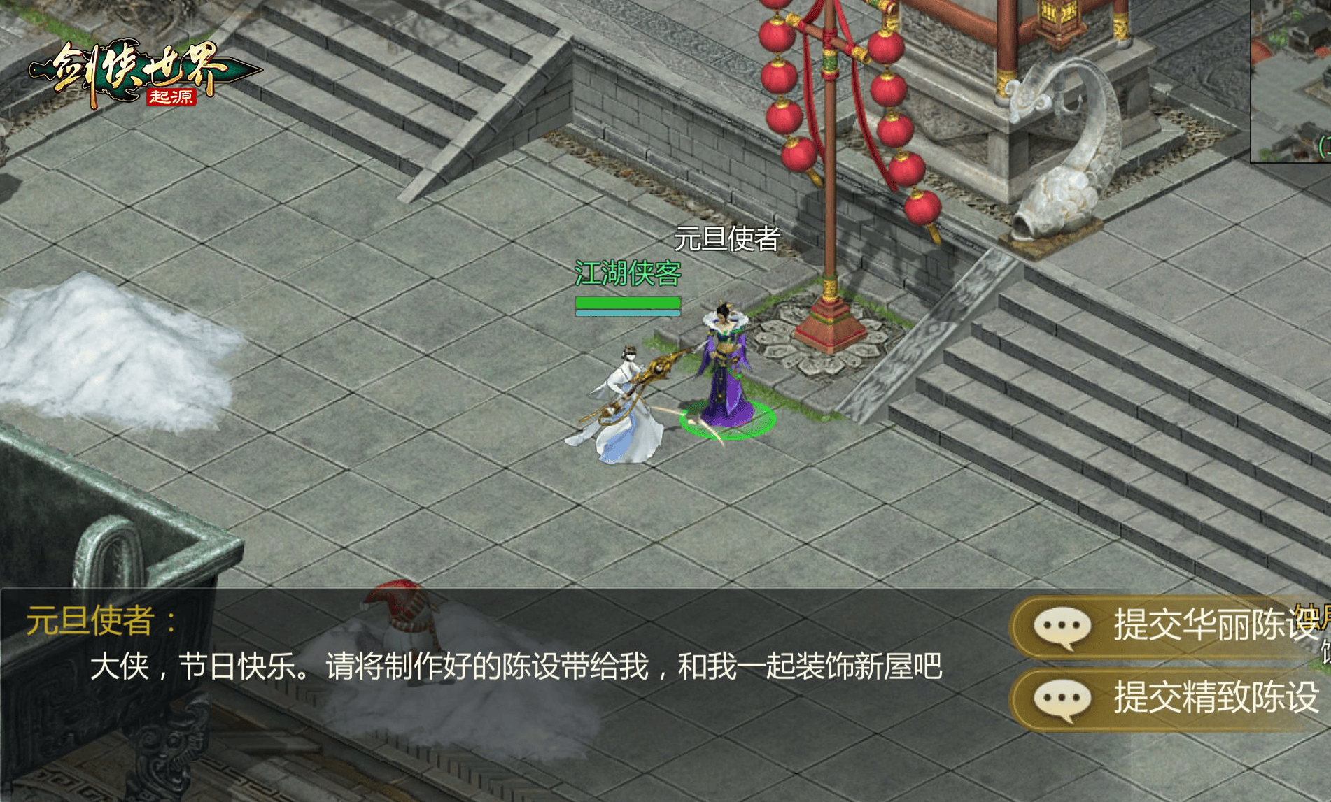 华灯初上赏烟火,坐拥经验福雨润。 江湖不只有快意恩仇,更有张灯结彩的人间烟火。活动期间,大侠参与日常玩法即可收集装饰材料,亲手装点您的江湖小窝。将精心合成的装饰道具呈交给元旦使者,每一次装扮都有随机惊喜奖励回馈。每当夜幕降临,帮会领地将开启“烟花庆典”。漫天流光溢彩不仅点亮了江湖夜空,更带来实实在在的福利——凡赏烟花的大侠,皆可获得海量经验,轻松修炼升级! 与此同时,还有许多庆典宝箱散落于城中角落,静候有缘人开启。赏景之余亦能满载而归,岂不快哉?