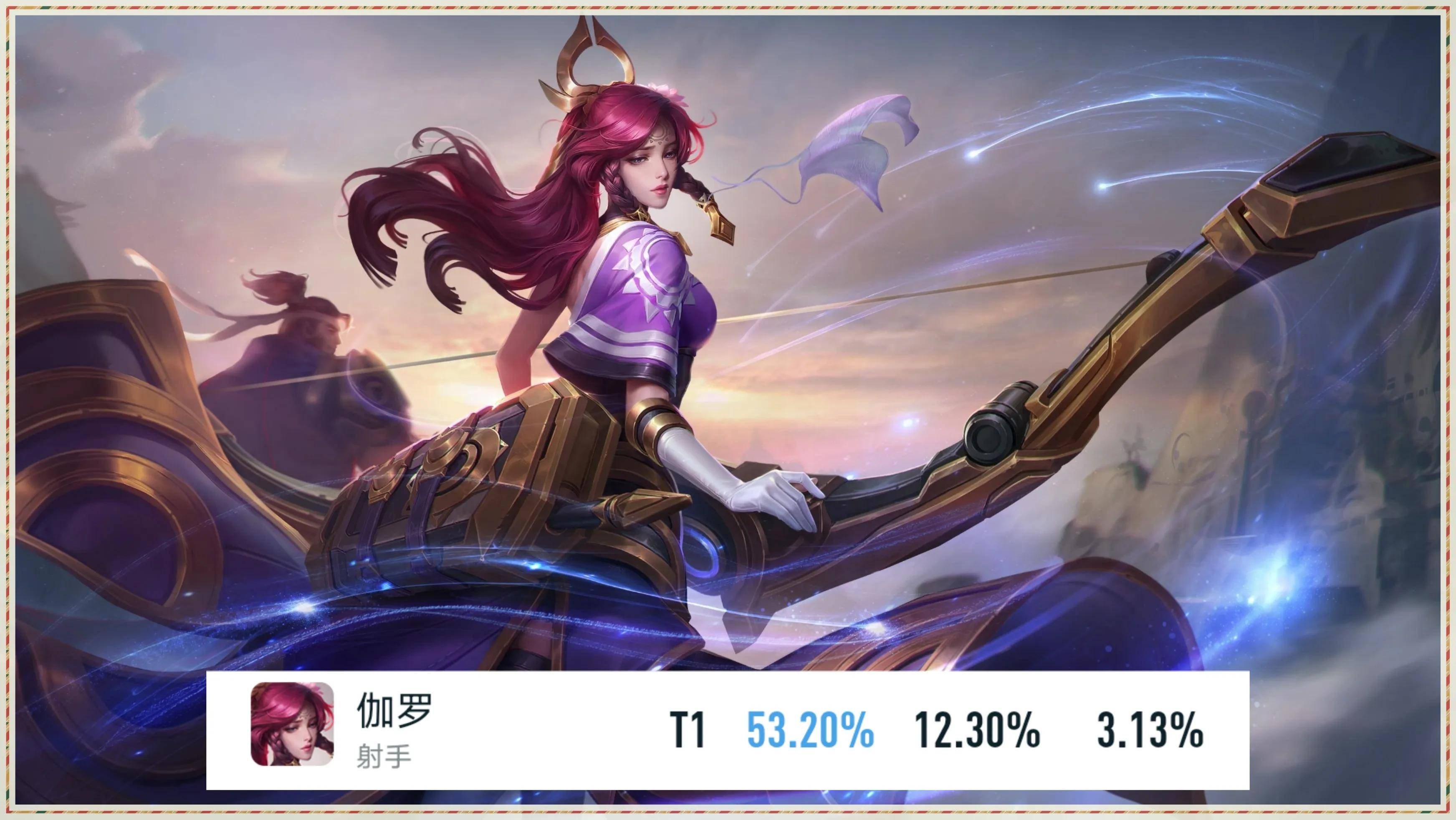 发育路胜率最高的是伽罗,胜率是53.20%,仅比黄忠高了1.8%。