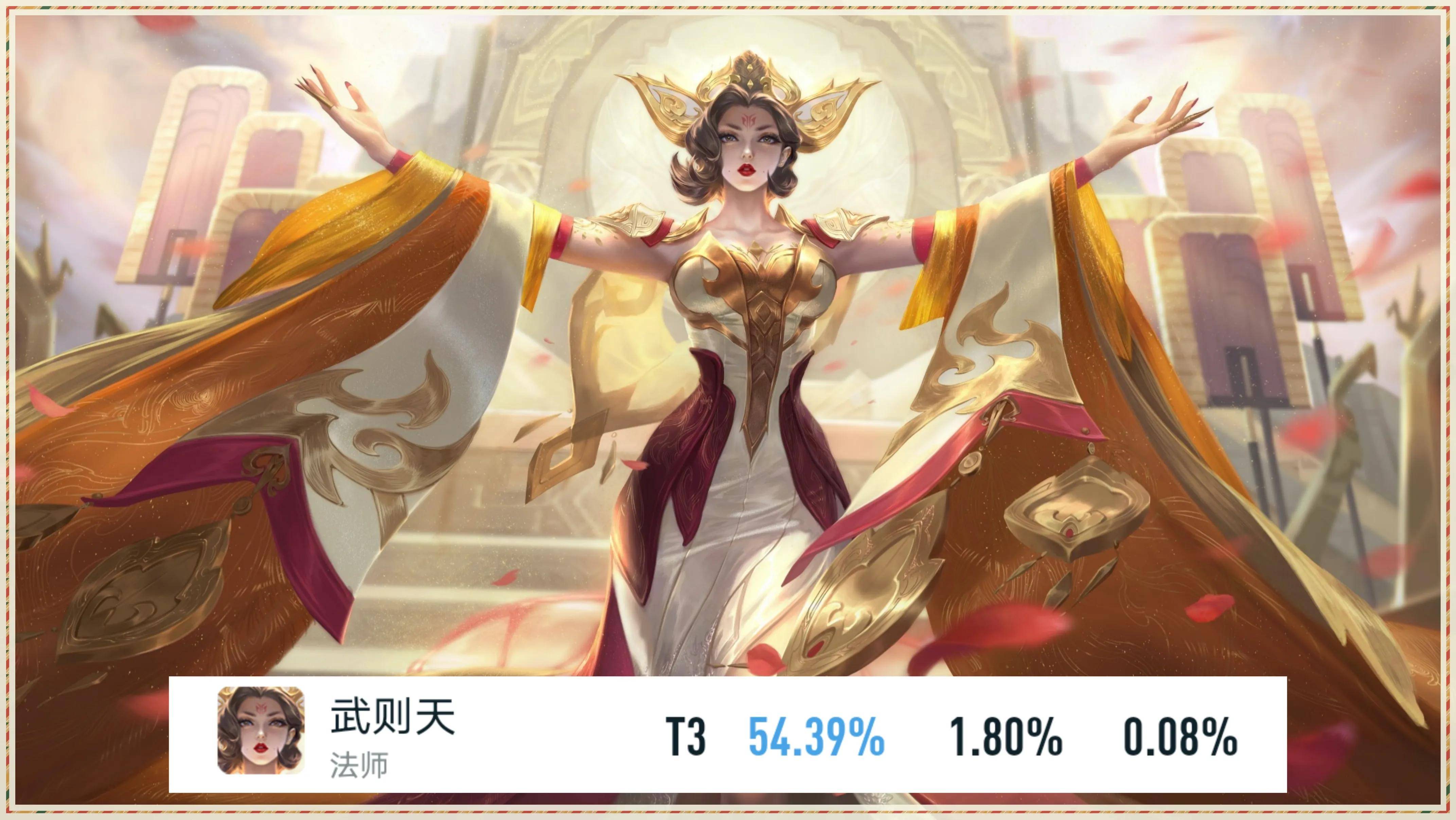 第二名中路的武则天以54.39%的胜率,问鼎中路胜率第一名。
