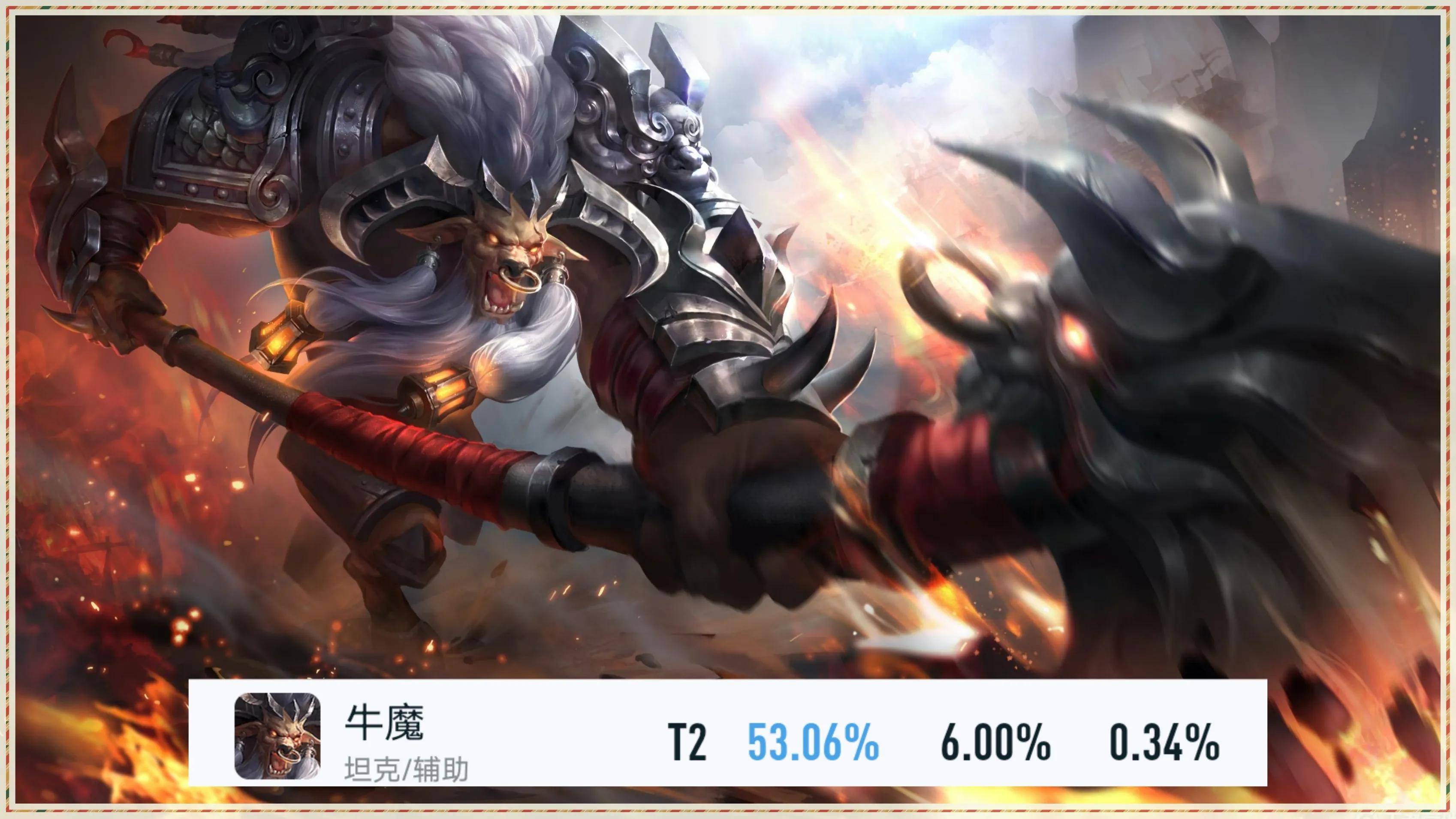 而目前牛魔以53.06%的胜率,位居所有辅助英雄当中的第一名。