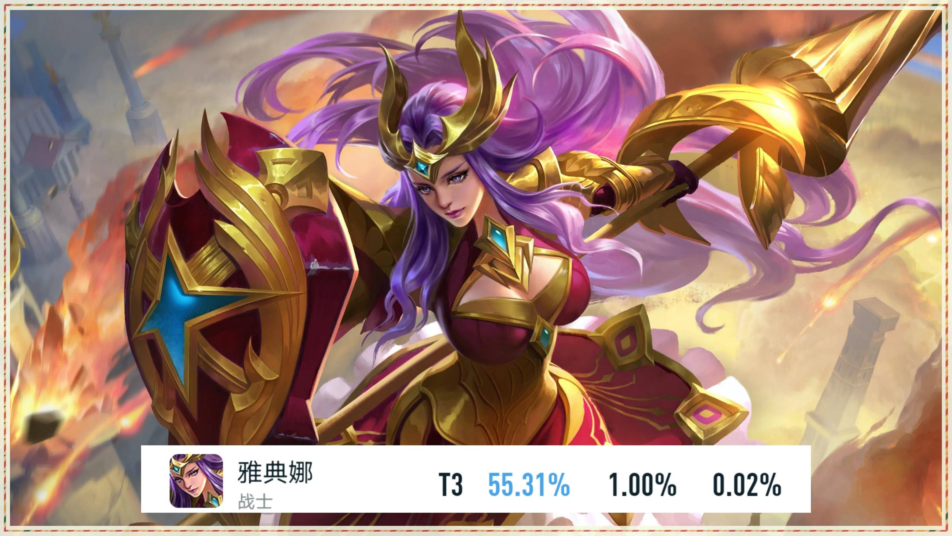 最后就是打野位置,也是目前所有英雄当中胜率最高的一位雅典娜55.31%的胜率。
