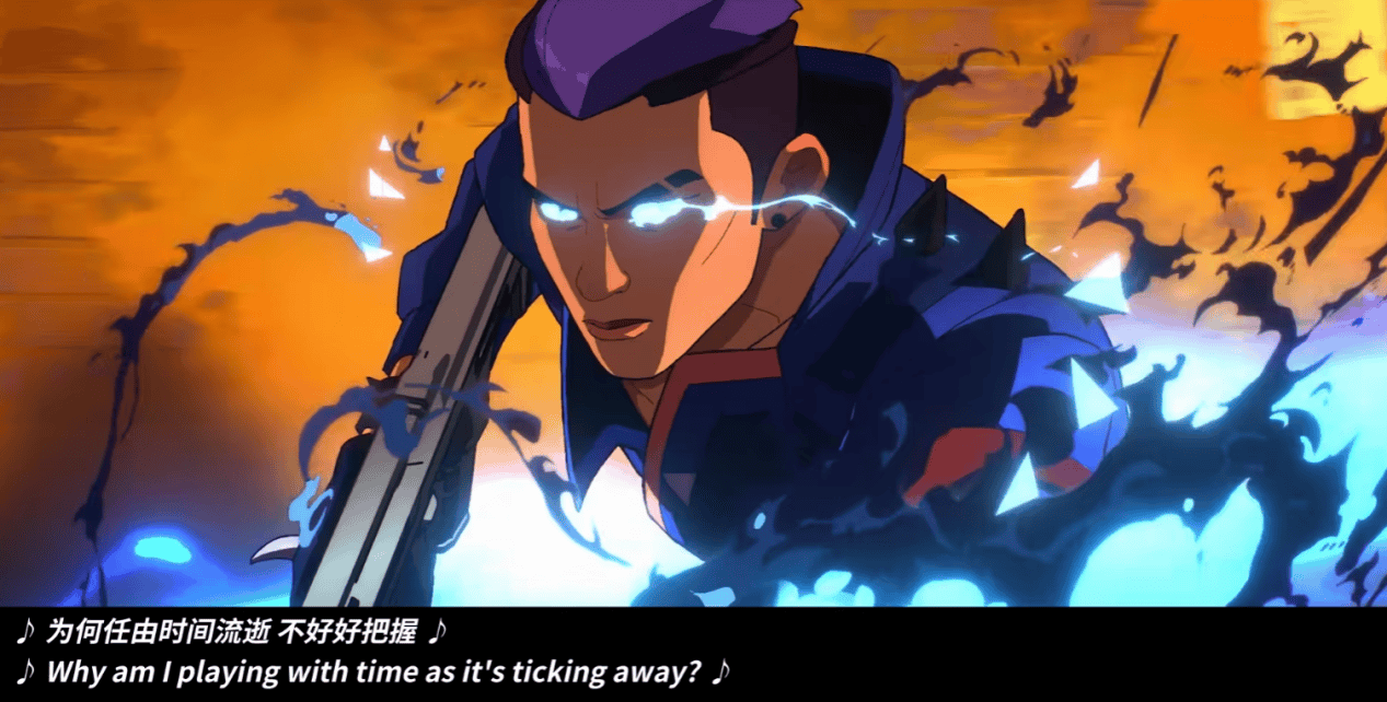 更不用说在此之前,Riot公司的王牌产品《英雄联盟》就已经凭借类似的设计火爆全球,证明了这种美术风格在市场上的可行性。这种风格也极大地便利了后续的世界观拓展和艺术创作。比如游戏的CG微电影,采用了和《双城之战》类似的三渲二动画风格,兼具手绘质感与立体动感。而历年的世界赛主题曲,大多采用2D动画短片的形式,这种形式不仅方便叙事和场景切换,也更有张力。2023年的世界赛主题曲《流光似箭》,在我看来是近些年最棒的游戏音乐MV作品之一。