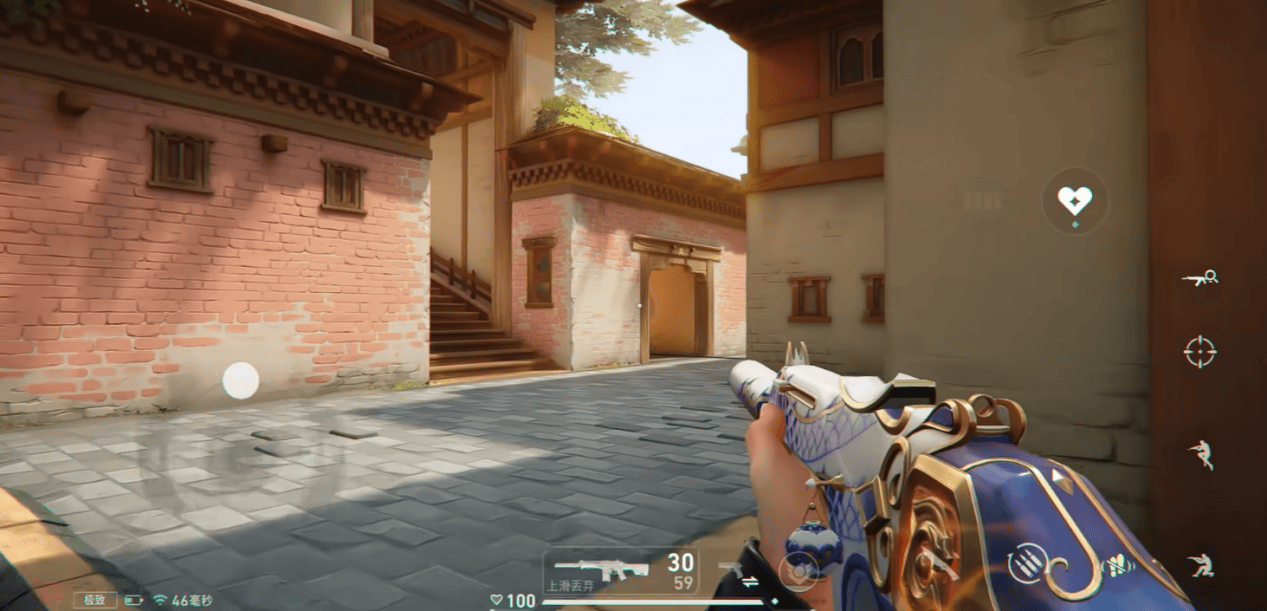 以瓦手独有的国风地图“古寨”为例,攻方和守方被设计师用冷暖色调的方式区分开来,攻守两边的墙壁绘画也有所不同。为了保持色调的一致性,不让地图元素干扰正常的游戏进程,设计师组还对取材地的屋檐样式进行了化用,舍弃看起来有些突兀的白色,选用和地图整体风格契合度较高的绿色。