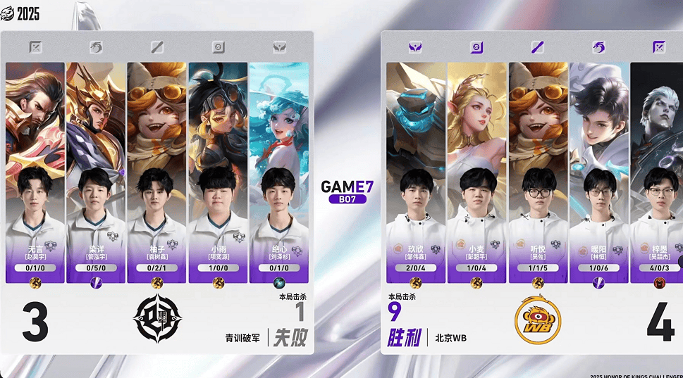 回顾比赛,青训破军最后打的确实有血性,频繁入侵WB野区,但是WB也不是吃素了,打了好几局了,青训破军的套路也摸透了,这一次直接让对面杨戬吃瘪了,入侵野区各种被制裁,也丧失了优势。