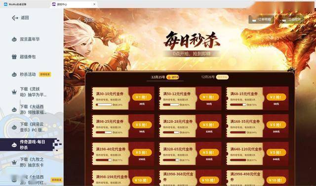2.进入活动中心后点击“传奇游戏-每日秒杀”即可开抢。