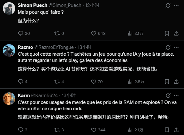 但,觉得没意义的人也挺多的,我打工买了游戏还要给AI打,那不成给AI打工的了吗?