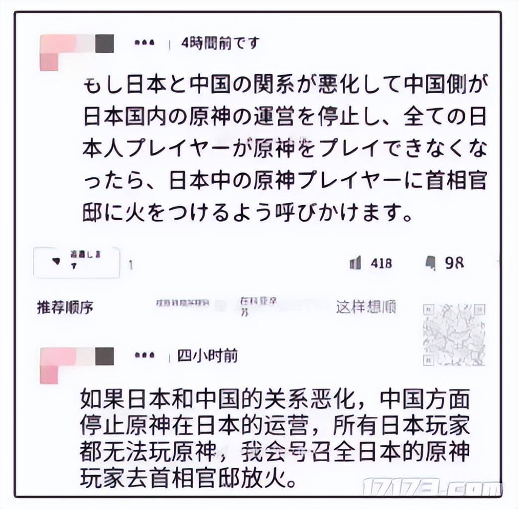 “要是因为中日交恶玩不到原神,我就号召全日本原神玩家,去首相官邸放火。”
