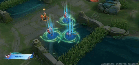 以上是特效的展示,整体以绿色+蓝色的混色调为主,此外,还会给普攻和一技能新增粒子拖尾+虚幻光影,看起来显得更有神秘感一些。