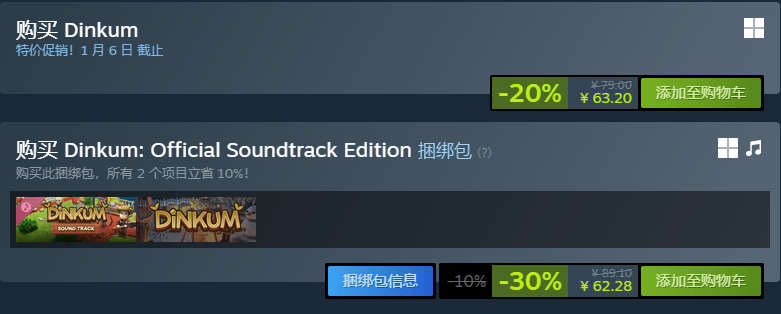 Steam冬季特卖火热进行中,田园经营佳作《金垦小镇》迎来最佳入手时机!即日起至2026年1月6日凌晨2点(北京时间),游戏本体享8折优惠,购买包含原声音轨的捆绑包更可享受最高7折优惠。