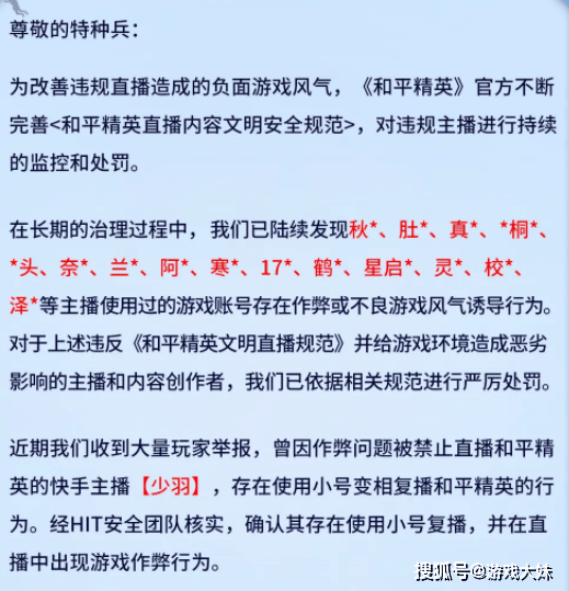 知名游戏主播被封杀10年,行为劣迹斑斑,多次用小号偷偷复出,近日,《和平精英》官方发布直播生态治理公告,对主播“少羽”及其关联小号实施长达3650天的封禁,并明确表示将持续推动直播平台联动处罚,同时不排除通过司法手段追责,这一处理结果在圈内迅速引发讨论,其意义,显然早已超出“封了一个主播”本身。