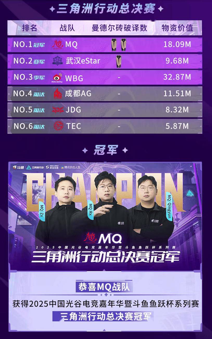 MQ战队、PDG战队分别荣获三角洲行动、无畏契约系列赛事冠军