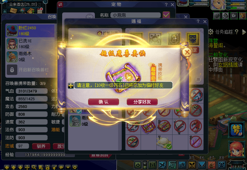 前段时间,【诗情画意】服务器有位少侠为了提升召唤兽的任务效率,对一只吸血鬼进行赐福——没想到竟人品爆发,被系统直接赐予了一本超级必杀兽诀!