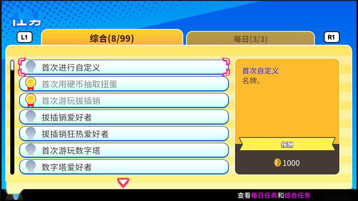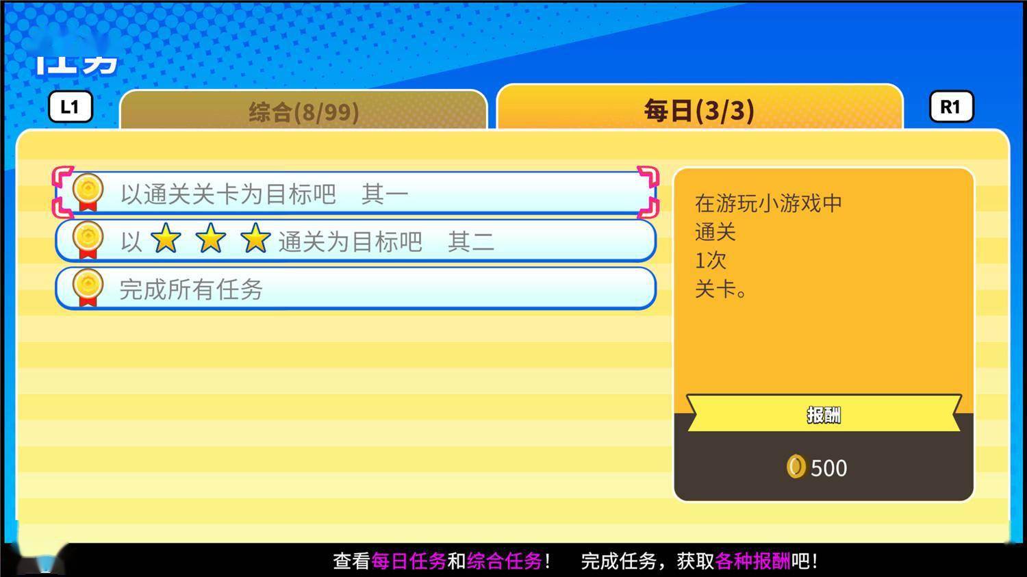 “综合任务” 共有99项,完成任务后可获得各种各样的报酬。