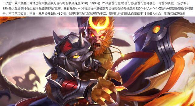 孙悟空加强:2技能的分身伤害增加,对主宰和暴君的伤害更高,清野速度更快,续航生存略微降低。