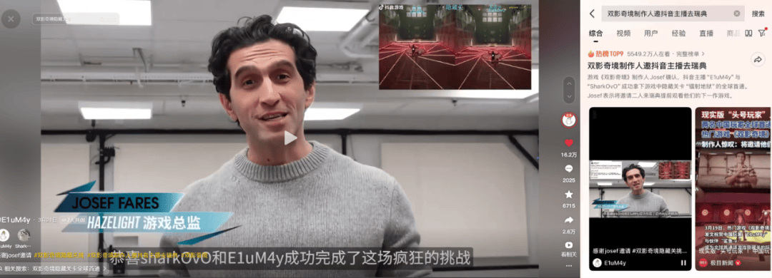 结果大赛成功挖掘了两位世界级首通隐藏关卡的主播,制作人Josef Fares为此录制了恭贺视频,还邀请两位玩家去瑞典参与工作室新品的现场体验。可谓是成就了一场游戏厂商、游戏玩家、内容平台多方共赢的佳话。