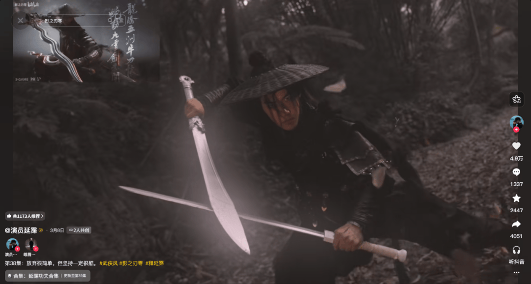 针对游戏中的文化元素,抖音还特意链接了一批其他垂类的内容创作者,从一些新颖但又契合的角度把游戏特色传递到了更广泛的用户群中。类似编剧雷神、演员延霈等创作者,就从传统武术招式、武器设定、侠义精神剧情解析等角度出发,产出了不少优质内容。