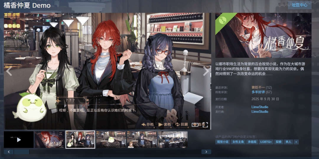 只是团队也并未完全市场导向,依旧会坚守着自己的创作调性。比如游戏名为《橘香仲夏》,而非《996百合模拟器》,也是因为团队不想刻意制造噱头。