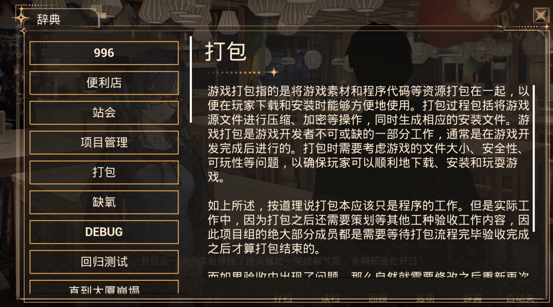 程序员余桐代表着对当下的接纳,这条线里,藏着最贴近游戏行业本身的班味内核——她能力出众,是项目开发主力,在996的生活之余自己也在家在开发游戏。