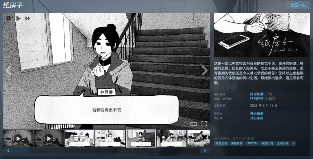 在紫荆看来,市面上的文字 AVG 大多带着悬浮的质感,受日系作品影响,校园恋爱与幻想题材占据主流。即便有《中国式家长》这类聚焦现实的作品,整体表达也更偏向娱乐化。