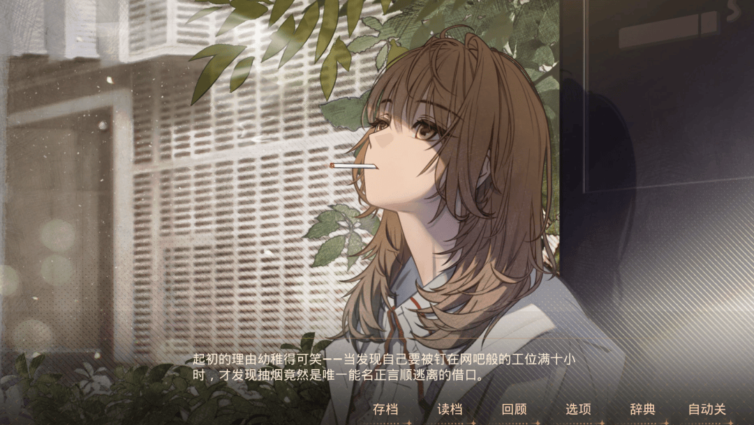 比如女主抽烟的设定。在压力爆表的工作中,下楼抽支烟喘口气,是北京写字楼下最常见的真实场景。“它反映出女主身上的丧与疲惫,是人物塑造里不可或缺的部分。”当然团队也会不断优化剧情的表达,避免影响到玩家的观感。
