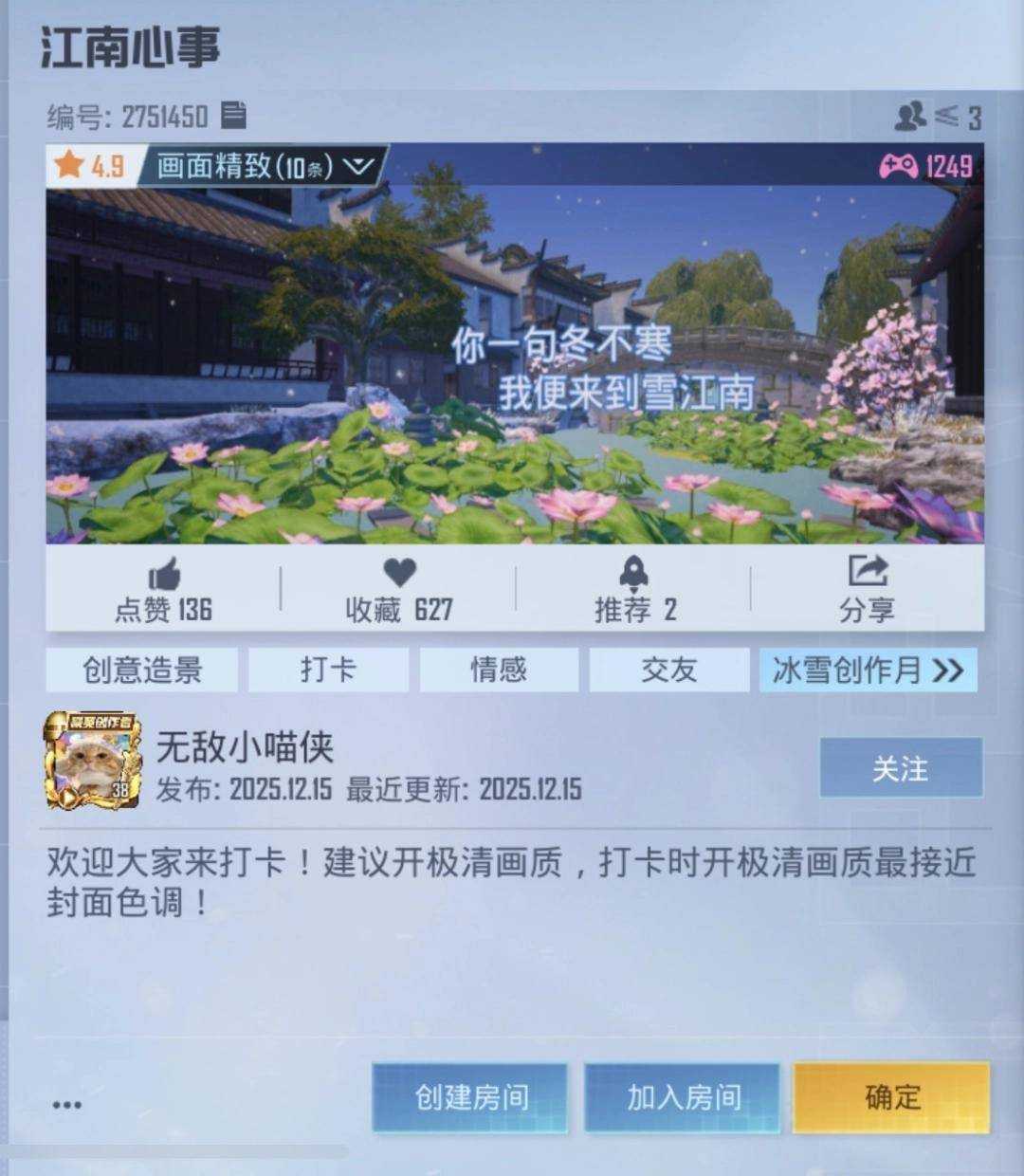 无敌小喵侠近期创作的地图《江南心事》,还原江南风情