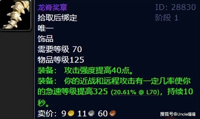 格鲁尔巢穴的龙脊奖章,虽然常驻攻击强度只有40点提升,但他以其恐怖如斯的被动高额急速等级提高,直接洞穿版本,成为TBC时代最保值的饰品,且没有之一,当然基于他的急速成长特质,确确实实在太阳井高地急速漫天飞舞的时候,他才能发挥到了100%的功用,最近看到龙脊奖章讨论比较多的一个话题是哪个职业用最恐怖如斯,不知道各位大兄弟都有何见解?