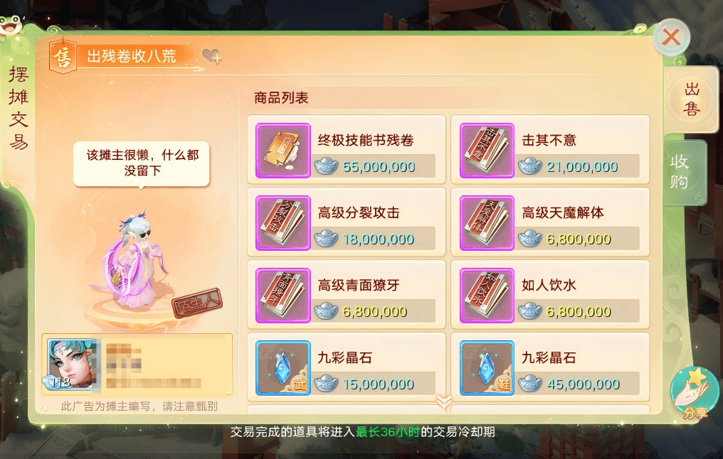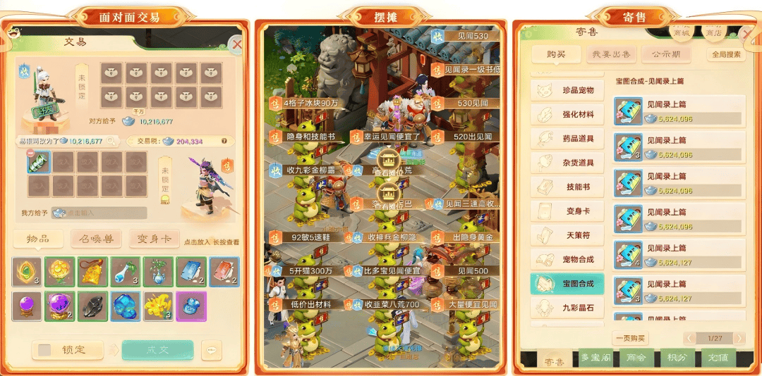 那你就知道大话手游交易服,摆摊、当面交易、寄售这三种交易方式的含金量有多高了,不仅可以上架任意道具、召唤兽,还没有价格区间限制,包括寄售也是,随便你填价格。