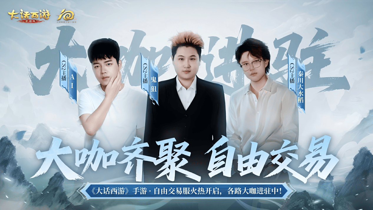 《大话西游手游》首个数字交易大服【二〇二六】来了!好久没有见到回合市场这么热闹了,12月30日开服当日,玩家为抢新区资源化身“蹲守战士”,重量级嘉宾沙子哥 &顶流主播天团携福利空降,自由交易机制让高价道具秒成交。