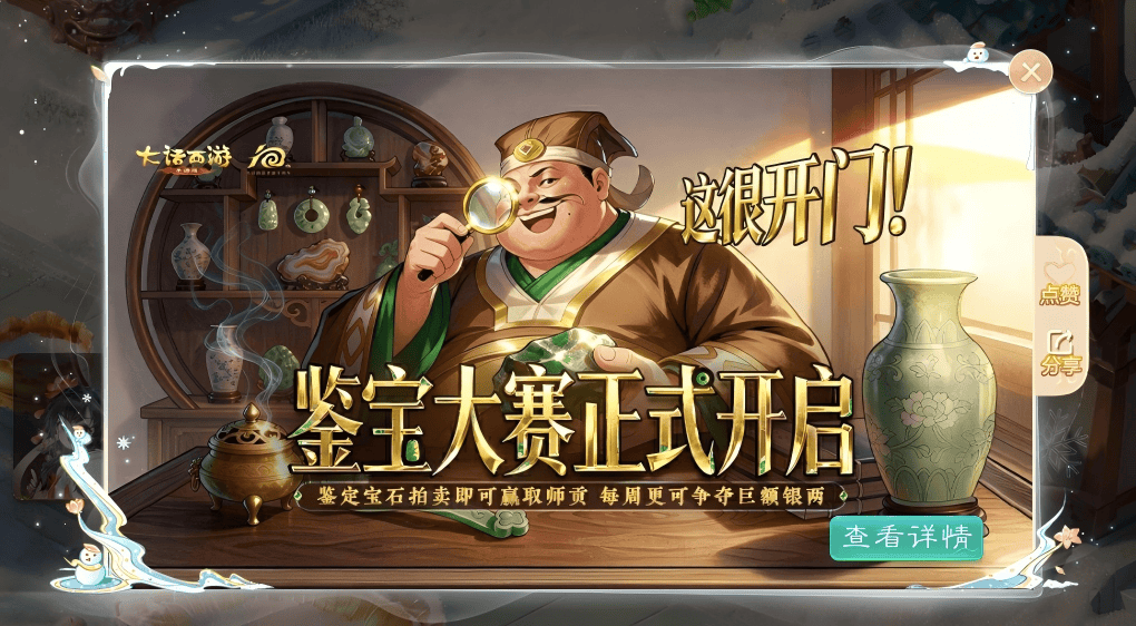 12月11日,鉴宝大赛正式开启,鉴定宝石拍卖就能获得大量师贡,如果你能打上每周全服排行榜,第一名有足足8亿8888万银两奖励,全服前100名瓜分百亿银两,想要赚银两的朋友一定要抓住这个千载难逢的机会!