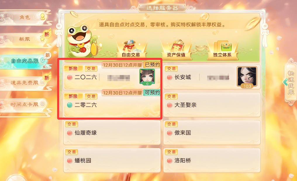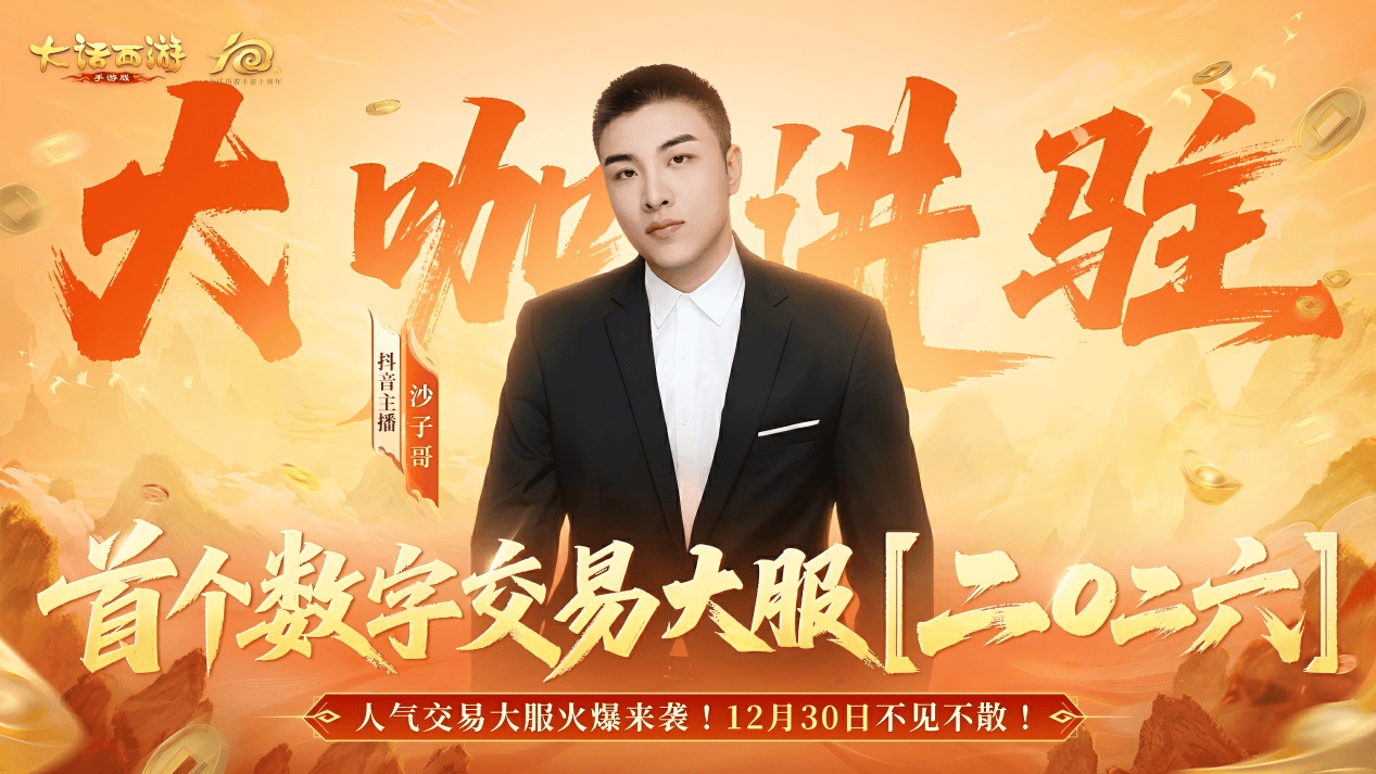 目前,首个数字交易大服【二〇二六】已经正式上线,官方搭台让利,市场开放透明,玩家自由交易,好奇能不能赚到第一桶金的朋友,别犹豫,赶紧进游戏看看。《大话西游手游》人气交易大服【二〇二六】,12月30日,就等你来了!