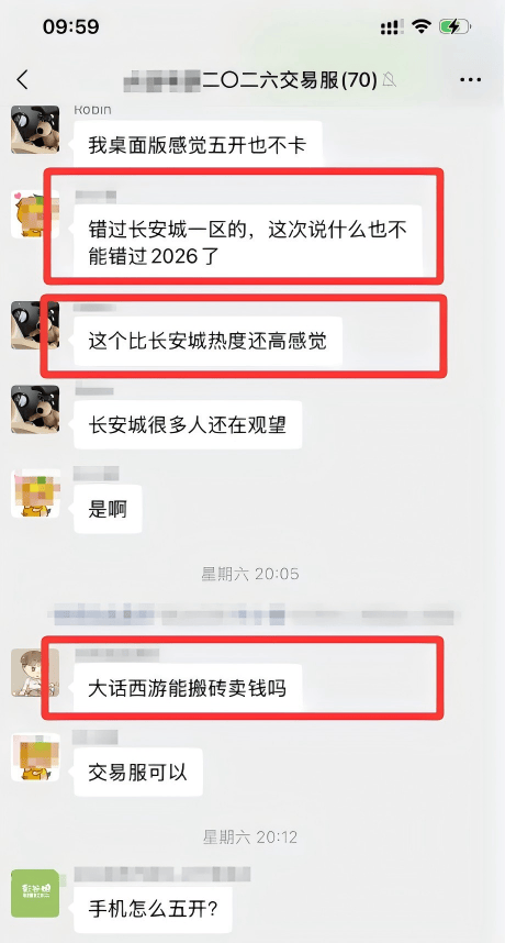 我所在的交流群,那些错过了一区【长安城】的玩家,感觉像错过了一个亿,“这次说什么也不能错过二〇二六”,为了抢到开区第一波资源,他们早早就蹲守排队等候,兴奋地讨论着怎么在新区搬砖赚钱。