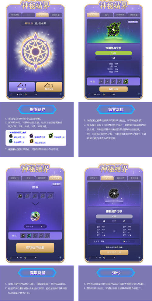 除此之外,这次的挑战者世界还增加了【神秘结界】的全新任务。活动期间,接取[挑战者]神秘结界任务,挑战者世界出现神秘结界,帮助埃尔文和莉莉,获得蕴含特殊力量的结界之核吧!