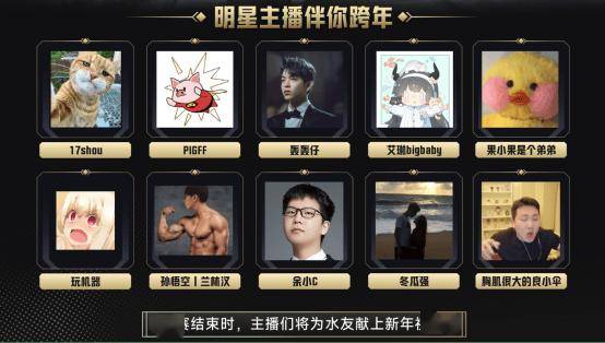 跨年钟声响起,主播们还将为水友送上祝福