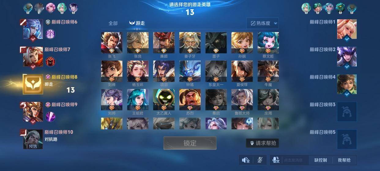 这局补位辅助,双方选出来的英雄比较少,我们先来看我方阵容,没选的也已经预选了,杨戬可以算是半个前排,我们阵容比较缺控制和开团,理论上来说选一个开团肉辅是最适配我方阵容的。