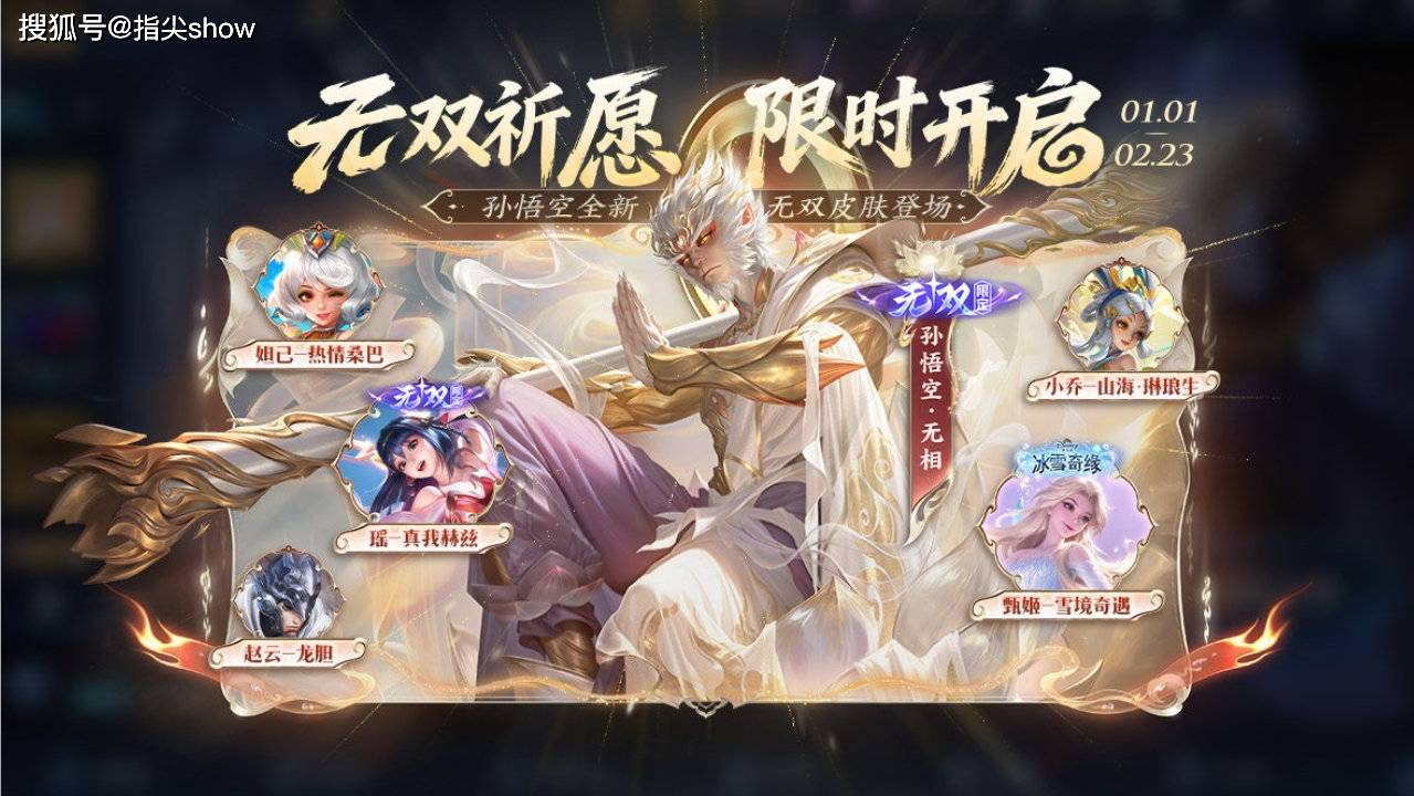 孙悟空无双皮肤上线,联动着两款无双皮肤返场,一款传说返场,和两款史诗返场。
