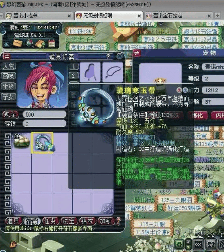 今日,【汴梁城】诞生了一条顶尖的130级三蓝字腰带,集特技笑里、特效无级别与暴怒于一身。其中,无级别和笑里都是X9高端PK中的热门蓝字,能有效压制对手愤怒。而“暴怒”虽与“愤怒”仅一字之差,效果却天壤之别——暴怒只能在受到攻击时增加愤怒,实战灵活性远不如直接降低使用要求的“愤怒”特效。