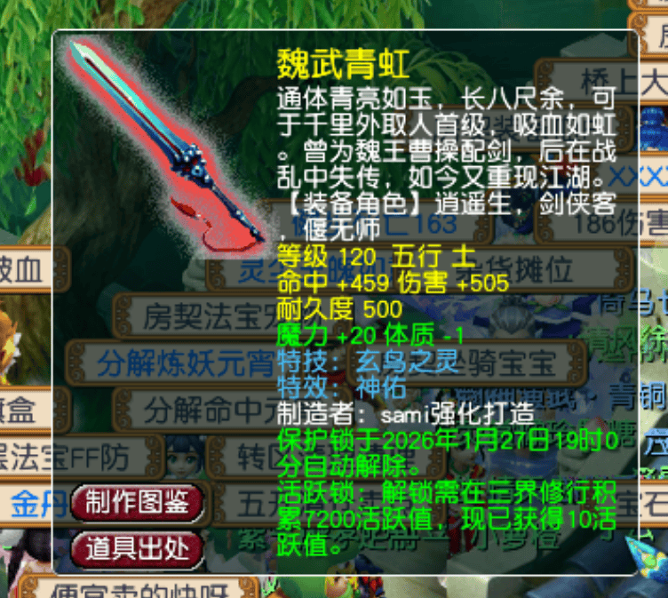 昨天,一位少侠在区内瞥见了一把天科法系神兵——这是一把120级剑,不仅拥有505点极限伤害,更兼具“神佑”与“玄鸟”两大极品蓝字,完美契合神木、魔方寸等法系门派需求。