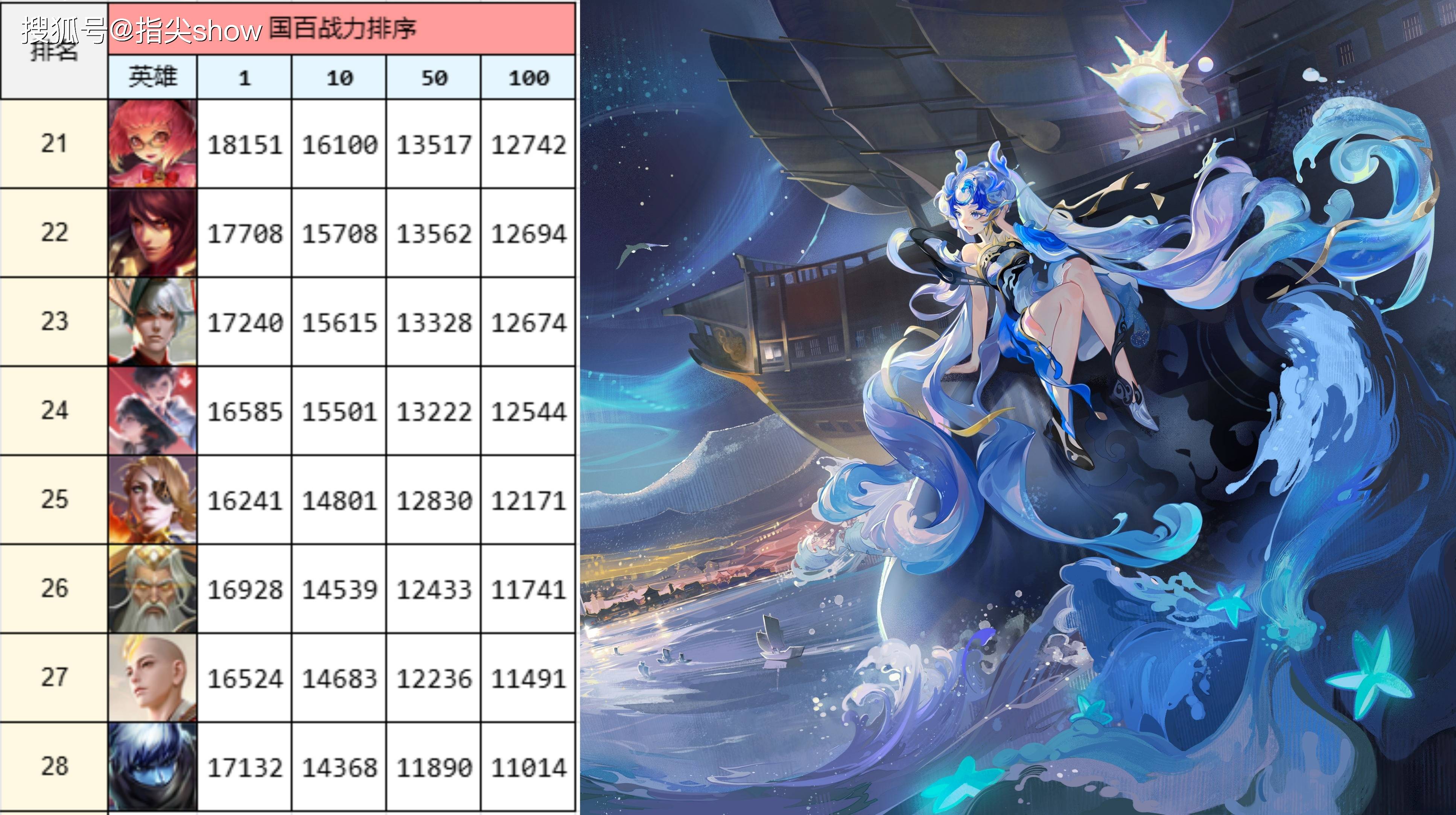 数据取自双系统四大区平均战力,以国百战力排序,每日波动仅供参考。