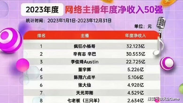 主打娱乐的时代,没有好的节目效果,很难在游戏板块立足,因此不少曾经的大主播,都已经销声匿迹了,即便是那些已经成名的主播,收入也大幅度下滑,不过瘦死的骆驼终究是比马大,最近就有网友,爆出了2023年,游戏主播的收入排行榜,咱们一起来看看有哪些人。