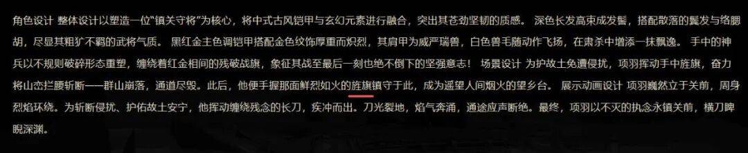 而这个擎着旌旗的身影,其实就是项羽的九幽镇关。从这款皮肤的介绍中可以看出来。所以,可能从曹操万灵伏威上线之初,项羽的这款皮肤就已经做好了。其实,这个系列还是挺不错的。希望能加入更多古代的英雄将领。