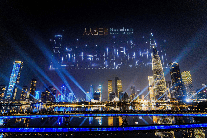 这充满未来感的一幕,正是“深圳南山超级IP嘉年华”暨“王者荣耀周年庆城市派对深圳站”的高潮剪影。