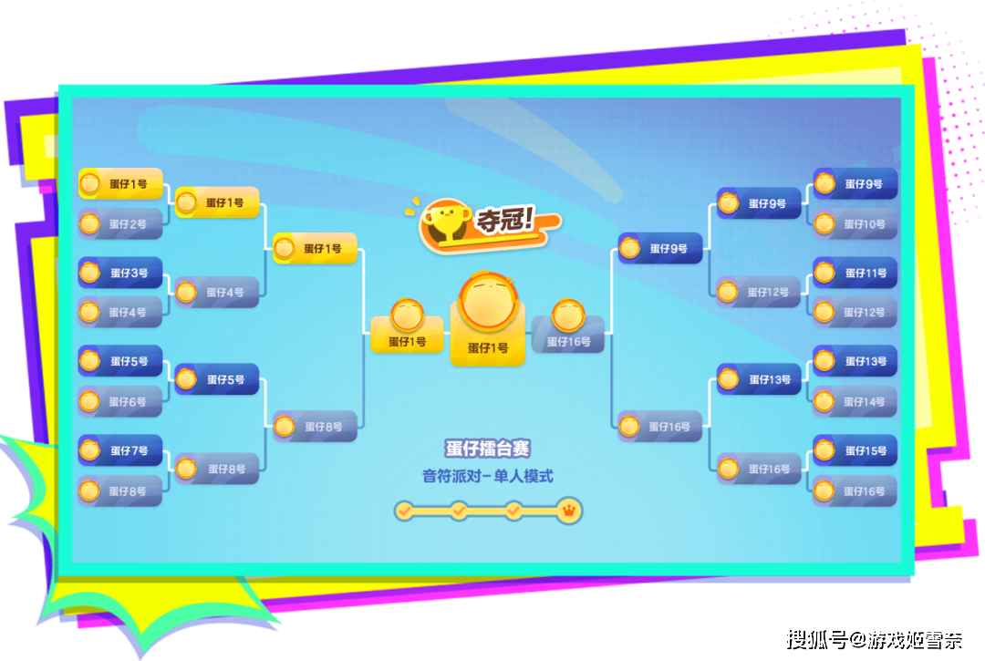 本次【蛋仔擂台赛】分为单人模式和双人模式,并且将分别在1月12日和1月19日上线乐园。在单人模式中,16位蛋仔各自作战,经过4轮对决选出冠军。而在双人模式,16位蛋仔将两两组队,经过3轮比赛一决高下,具体分组进入对局就可以看到啦~