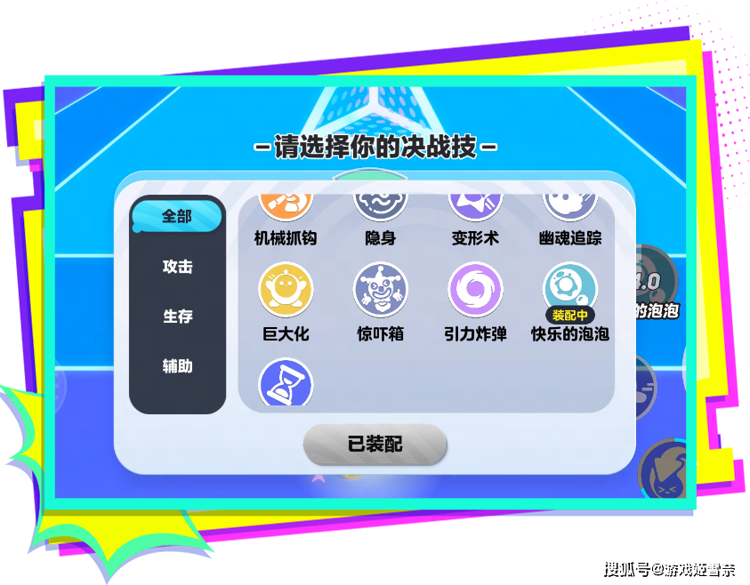 在比赛中,其中一名或一队蛋仔被击落赛场,另一方即为胜利者。在每场对决开始前,选手们有5秒时间选择决战技,包括【巨大化】【引力炸弹】【变形术】等等有趣技能,正确运用的话可以让自己如虎添翼,顺利拿下胜利!