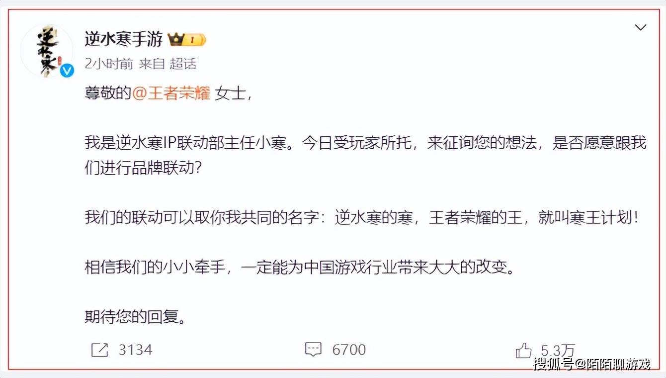 入选的都是行业精英,其中游戏赛道呼声最高的便是鹅厂旗下的《王者荣耀》,为此《逆水寒》手游还在微博公然喊话腾讯求合作,但过于高冷的《王者荣耀》却一直都没有回应。