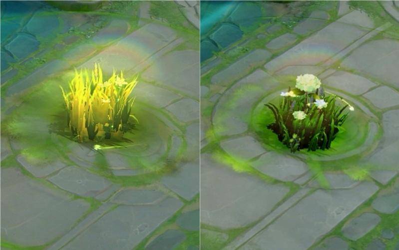 从特效上来看,原皮的优化确实很明显,一簇透亮的草丛变成了比较自然的花草丛。