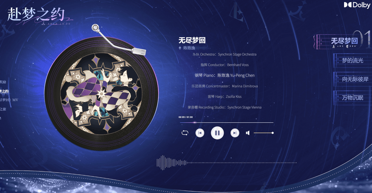 快手游戏与陈致逸的合作内容极具亮点。游戏《无尽梦回》将推出由陈致逸操刀的原声专辑《赴梦之约》,其中包含四首曲目,分别为同名主题曲《无尽梦回》、夜间登录主题曲《万物沉眠》、梦境专卖店场景曲《梦的流光》、梦乡场景曲《向无际彼岸》。这些曲目以梦幻、神秘、唯美、治愈、找寻自我为关键词,由维也纳专业乐团录制,品质满满。