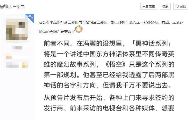 值得一提的是,虽然推主ignusthewise此前曾准确爆料过5月19日游戏科学公开的最新情报,但是关于三部曲的这个传言,早在2020年就被IGN首先曝出,之后在贴吧讨论中盛行,也出现过无数个变种体。