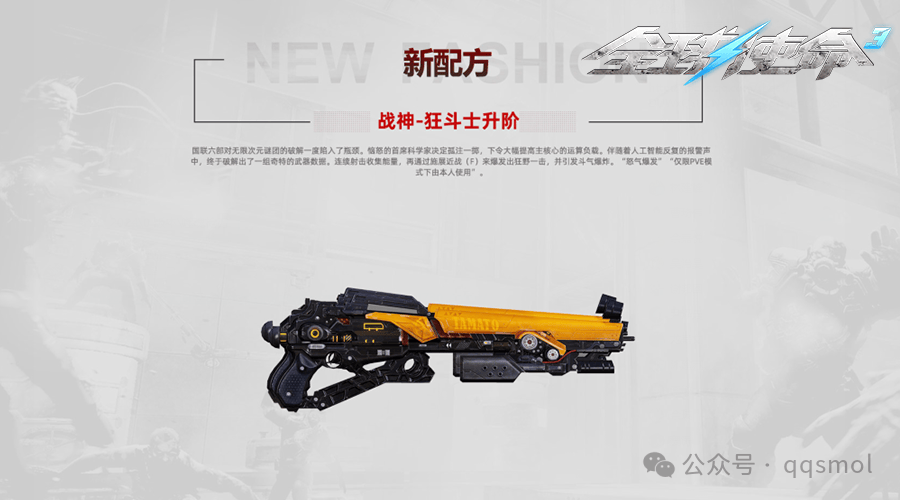 国联六部对无限次元谜团的破解一度陷入了瓶颈。恼怒的首席科学家决定孤注一掷,下令大幅提高主核心的运算负载。伴随着人工智能反复的报警声中,终于破解出了一组奇特的武器数据。连续射击收集能量,再通过施展近战(F)来爆发出狂野一击,并引发斗气爆炸。升级为橙色品质的战神-狂斗士,综合枪械数值达到了44643F.P.拿着这把升阶的战神-狂斗士进行绝地反击,是当之无愧的“救命”神器!
